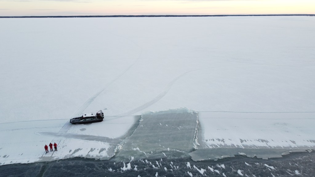 On January 8, 2024, the initial sea ice measurements were undertaken following an intense two-week cold spell, with temperatures plummeting to -30 degrees Celsius. Utilizing a hydrocopter, Sem Timmerbacka and Anders Ahlbäck ventured onto the ice, focusing on a predetermined route extending from the shoreline toward the Windmill area. The strategy involved commencing measurements in close proximity to the coastline, progressing with approximately 1 kilometer intervals along the designated line until reaching open water. Notably, the areas near the coastline had sustained ice cover for an extended duration, whereas those nearer to the Windmill area had only recently frozen over in the days leading up to the measurement expedition. The well-established ice near the coastline measured approximately 30 cm in thickness. As the measurements extended further along the designated line, new ice formations became apparent, exhibiting thicknesses nearly comparable to the pre-existing ice near the coastline. North of Harvungön, an area that had experienced open water a few days prior to the expedition, now featured a veneer of freshly formed thin ice measuring approximately 6-7 cm. Unfortunately, this newly formed ice lacked the strength required to support the hydrocopter, preventing the expedition to go further, and awaited more robust ice conditions before proceeding with the planed measurements.